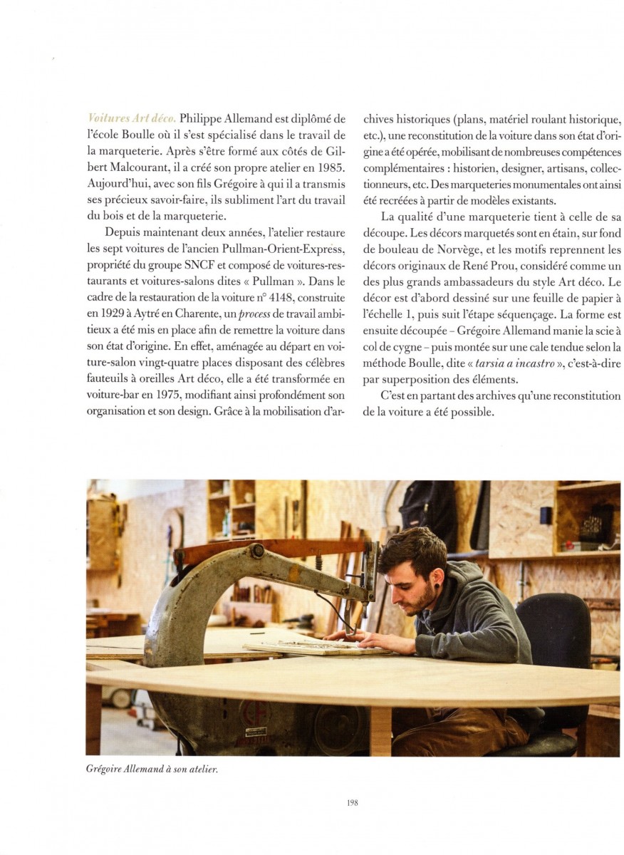 Cette édition consacre une page entière à l’Atelier Philippe Allemand qui restaure depuis deux ans les 7 voitures Orient Express / Groupe SNCF. « Anatolie », « Etoile du Nord », « Train bleu », autant de voitures qui retrouvent leur lustre d’antan grâce à nos ébénistes passionnés.